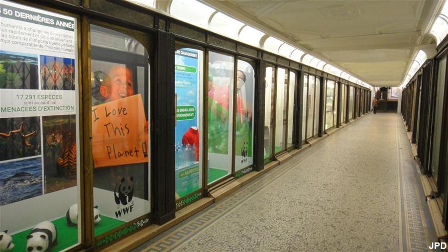 Nous avions visité cette galerie il y a deux ans; elle était alors bien sombre... Tout en lumière aujourd'hui, elle héberge une exposition totalement inintéressante sur l'environnement, d'où la foule se pressant devant les vitrines...