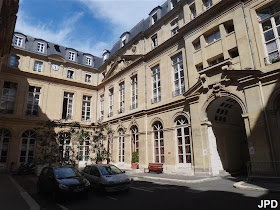 Dans l'entrée, une plaque mêle le Roi pour sa déclaration de 1749 et les révolutionnaires pour la loi du 19 Brumaire an VI...