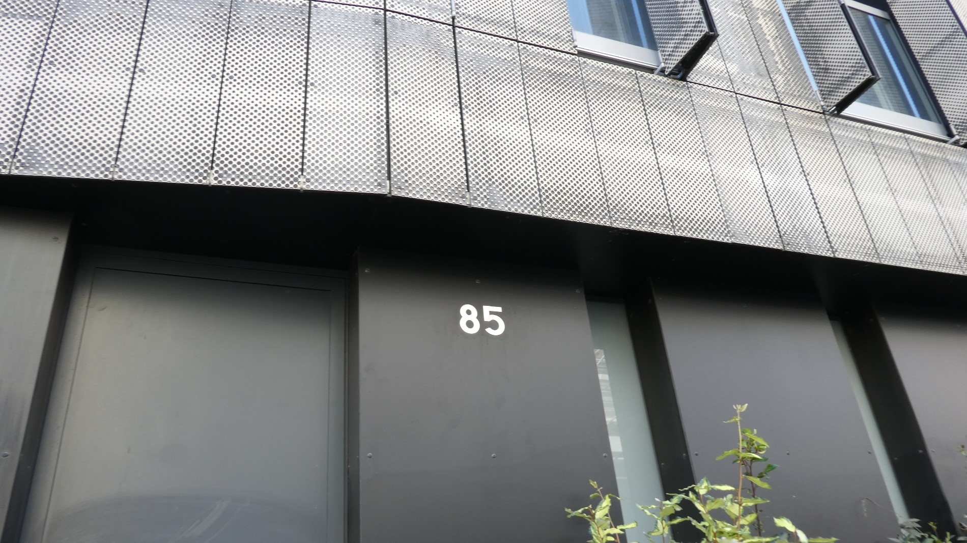 En survolant le 85 rue Championnet (grâce à google-maps) le "cube en ferraille" en question se révèle être bel et bien un immeuble d'habitation. Ainsi, on s'aperçoit que le sommet du cube est surmonté d'un double étage en terrasse. Et que, à mon avis, sa façade principale réside dans ses fenêtres sur cour.