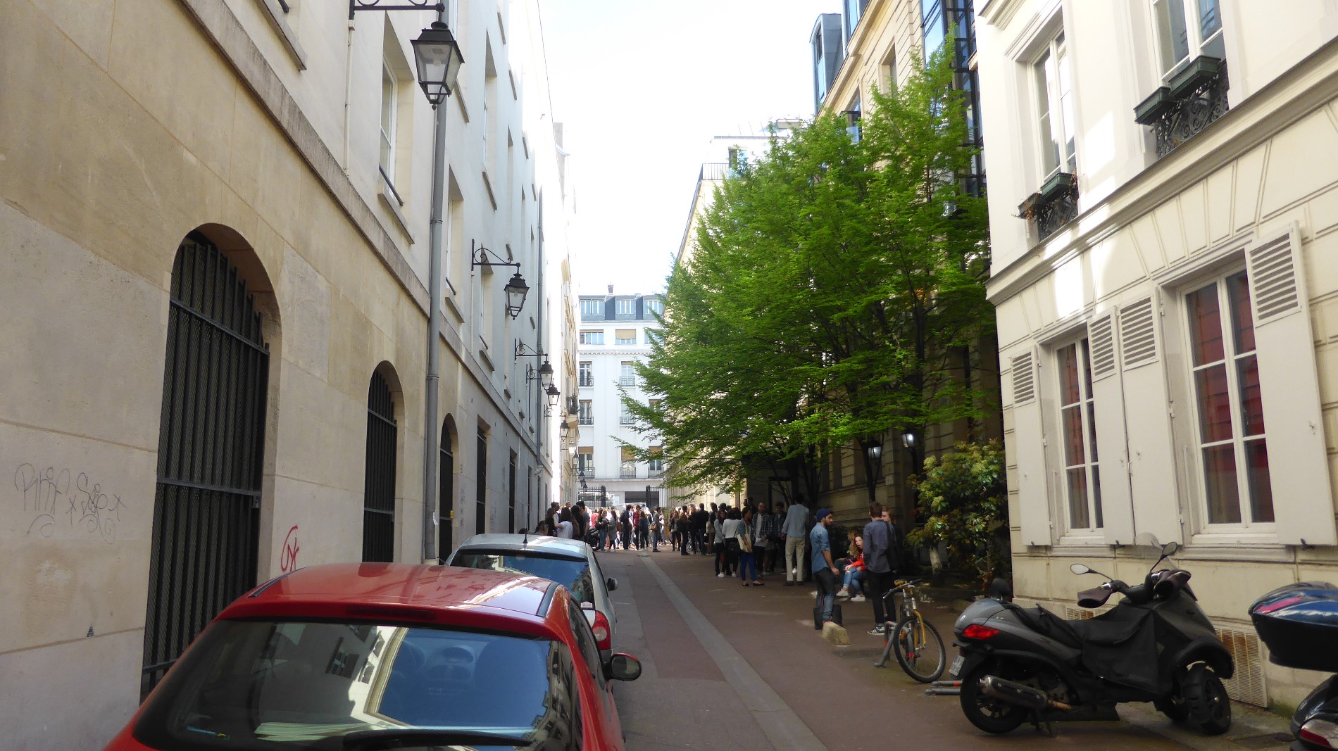 Cependant, si l'on se place devant le quinze rue des Barres, on aperçoit notre jardin: